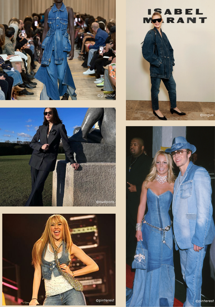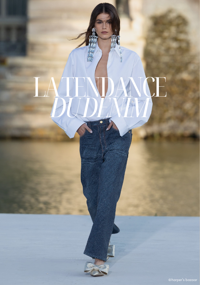 This trend comes straight from the 90s , then the 2000s and was popularized thanks to the Levi's brand as well as pop culture. We all remember Britney Spears and Justin Timberlake as well as Hannah Montana in their total denim look! We saw it in all the Fashion Weeks this season, from Ami to Alaïa via Versace or Burberry . Denim, in all its forms, whether jeans, bags, shirts, jackets or accessories, has conquered the catwalks and the streets of big cities. The most daring will wear it in a total look , and other fashion enthusiasts in small touches .