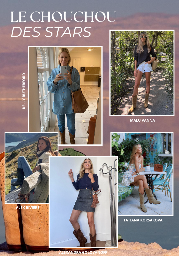 Fashionistas swear by Shiloh Cowboy Boots. Alex Rivière , Malu Vanna and Kelly Rutherford are unconditional fans. In particular, we have seen the Midnight model appear numerous times on their social networks. Adopt the cowboy style to be as stylish as these It girls.