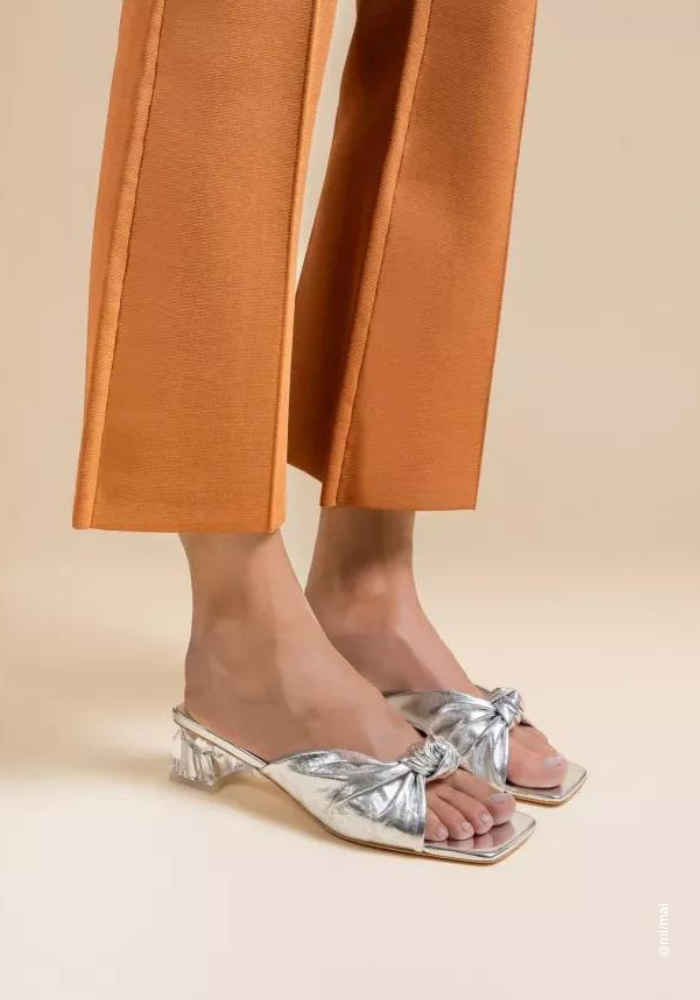 If the wedding invites you to a summer setting , outdoors, and you have opted for an outfit with light fabrics such as linen or muslin , the jewelry can contrast with this lightness . Aurélie Bidermann creations, with their colors reminiscent of summer and spring, will harmonize perfectly with the environment in which the wedding takes place. Silver sandals Mi/Mai , will be perfect to complete your guest outfit.