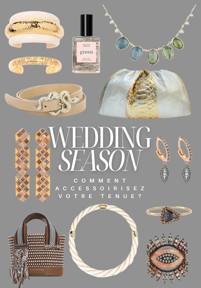 If you are attending a grand evening wedding, and you have chosen a long, figure-hugging dress where glamour and refinement are essential, opt for jewelry that combines chic and sparkle . A pair of earrings or a necklace by Kismet by Milka will catch the light, adding a luxurious and trendy dimension to your guest outfit. For this one, your bag must be up to the occasion but also in keeping with your choice. A bag from Sista Paris will carry your essentials while bringing a sophisticated touch to your ensemble. Choose a color that goes well with your outfit, black, silver or even a deep shade of midnight blue can offer an attractive contrast.