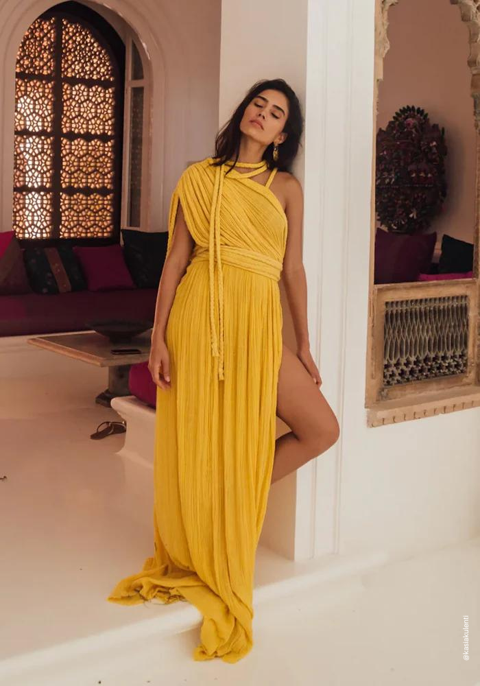 The first step in this quest as a guest is deciphering the dress code , it guides you towards the path to follow so that you are trendy ! A summer wedding under the sun calls for light fabrics and soft colors , such as linen, silk or muslin. An outfit by Mylène Birger or Kasia Kulenti will perfectly embody the spirit of the wedding and the season. These dresses with loose and flowing cuts, will add elegance and lightness to your guest outfit . For a ceremony on the beach, a flowing linen dress, with pretty delicate details such as fine embroidery or touches of lace, could be a wise and trendy choice for your guest outfit.