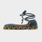 High Grape Red ballerinas in burgundy, black and white crochet with a lace-up closure.