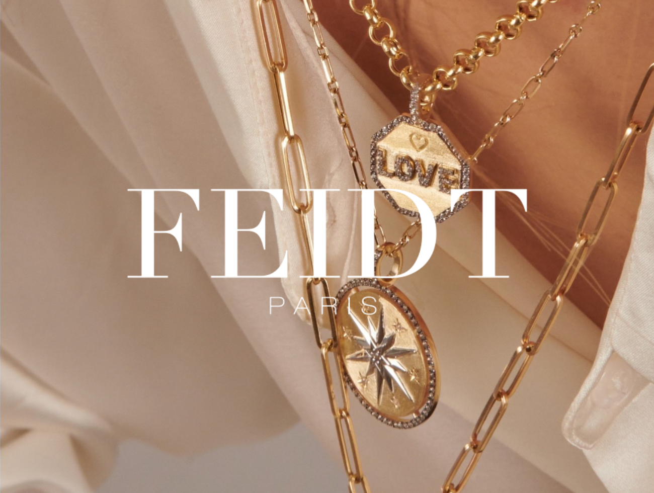 Boucle d'oreille Mini Maguen en or jaune 9k et pavée de saphirs verts en collaboration entre Feidt et Blush.